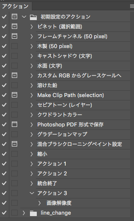 photoshopのアクション機能は、録画ボタンをおしてから行なった動作の手順を保存しその工程を再生する機能です。