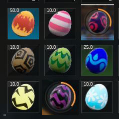 見た目(カラー)でなんとなくそれっぽさが出ています。体感ですが、龍の卵は種類が少なく、ほとんどの卵はデカ以上です。